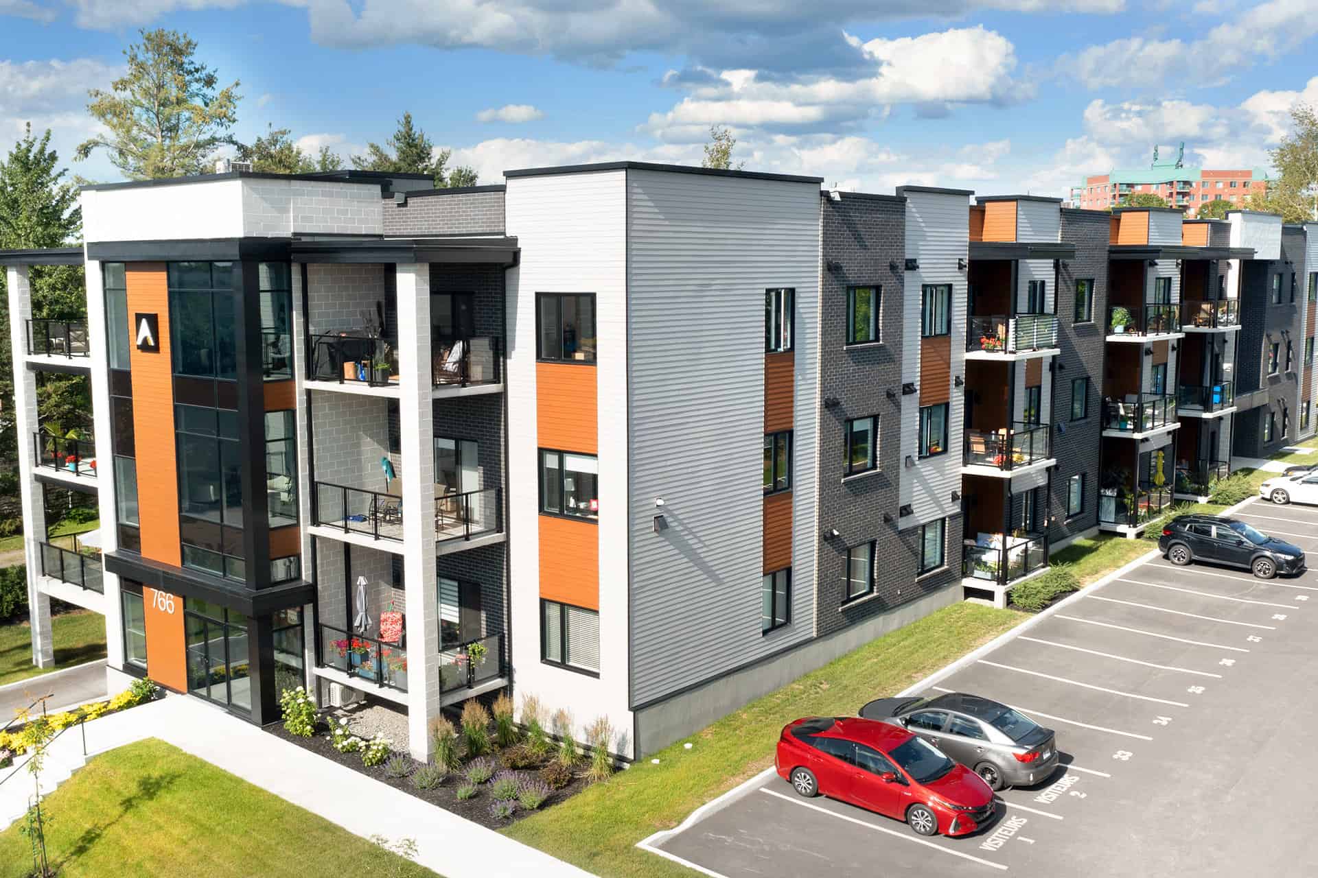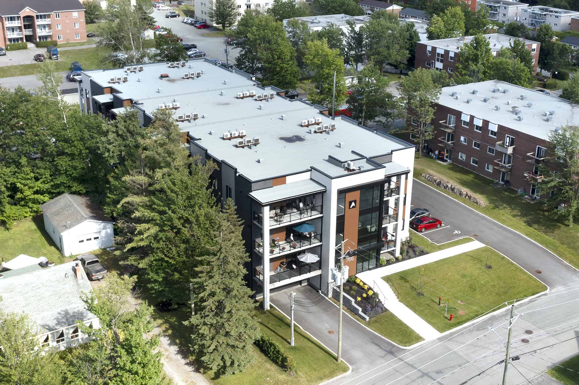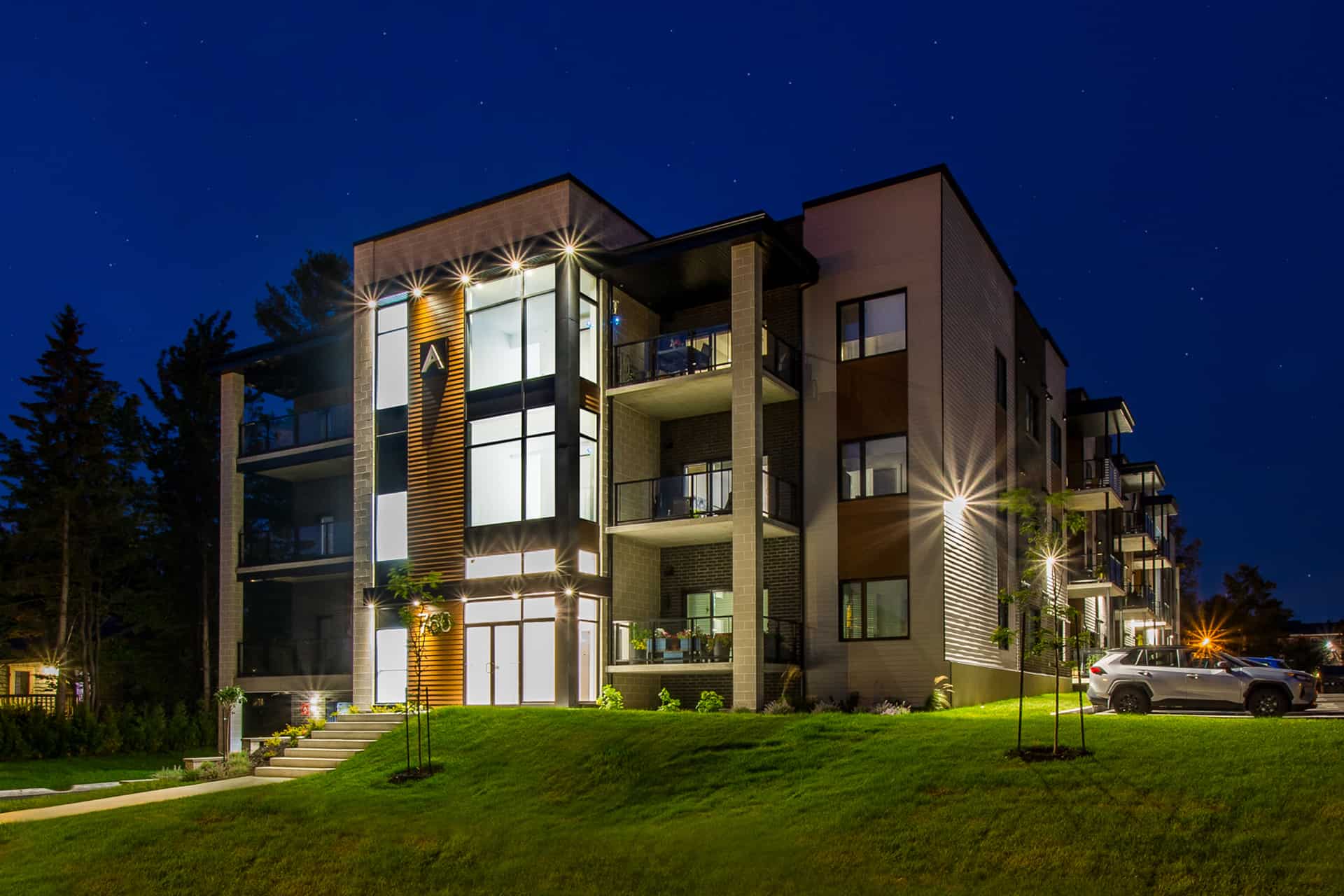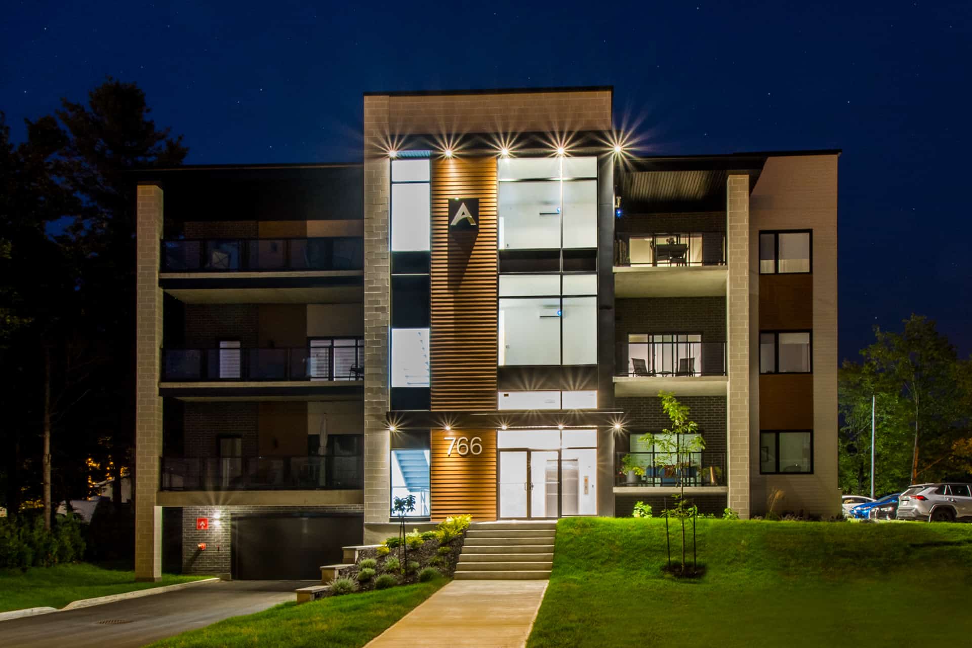 Immeuble prestigieux qui se démarque par son look actuel et ses grands logements lumineux. Situé dans un secteur des plus en vue, dans le nord de Sherbrooke, cet immeuble comprend 33 logements de type 3½, 4½ et 5½ dispersés sur 3 étages. Cet édifice comprend un ascenseur et stationnement souterrain. Chaque habitation comprend des comptoirs de quartz, thermopompe, salle de lavage distincte, walk-in dans la chambre principale et grand balcon. Vous aurez l’internet et télévision avec enregistreur HD incluant 40 chaînes.