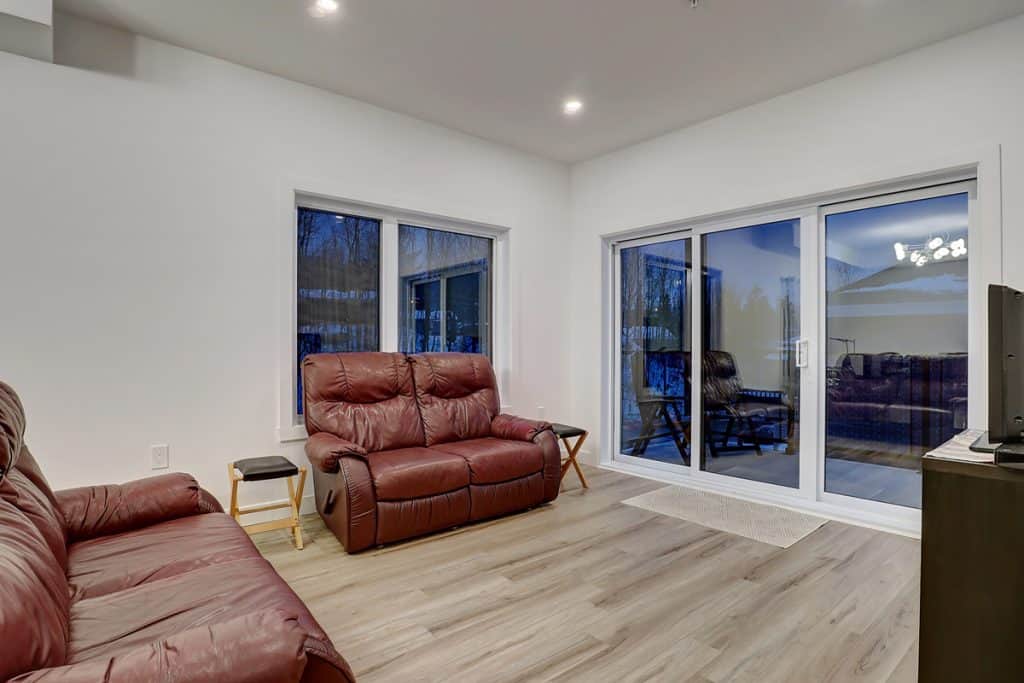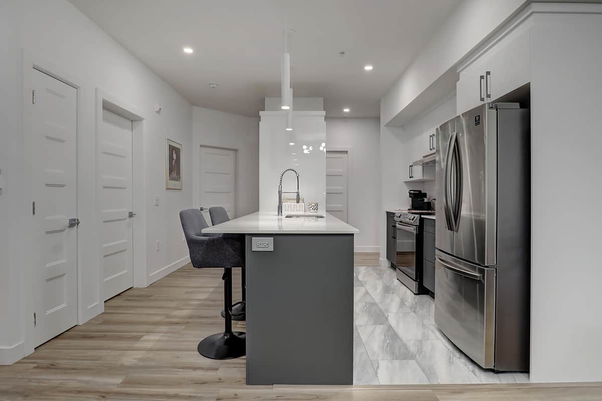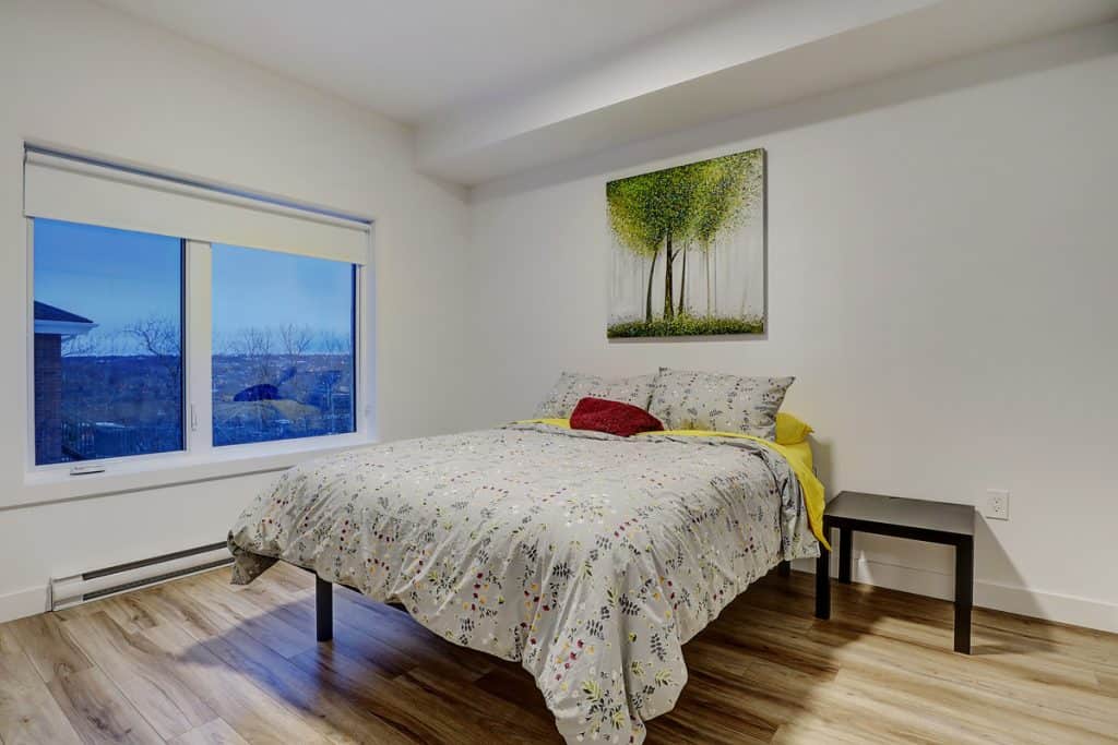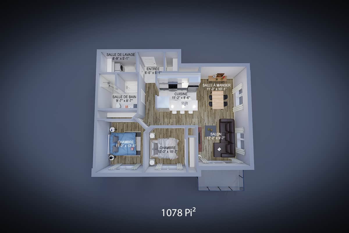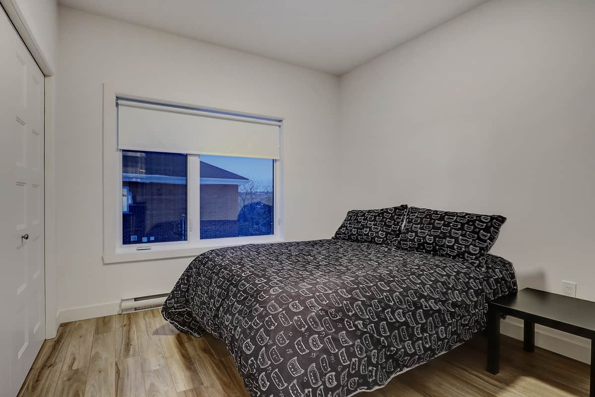Luxueux logement de style condo d’une superficie de 1078 pieds carrés. Ce logement au look moderne vous offre une vaste et lumineuse aire commune. Elle comprend une cuisine au goût du jour avec garde-manger, comptoir-lunch en quartz pouvant accueillir 4 personnes et une spacieuse salle à manger. La grande salle de bain possède un bain et une douche séparée ainsi qu’une grande vanité avec lingerie. La laveuse et sécheuse se trouvent dans une pièce indépendante pouvant servir de rangement également. L’internet (1 gigabit), la télévision à la carte 40 (enregistreur HD) sont inclus. Tous les logements sont munis d’une thermopompe murale.