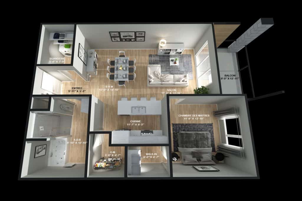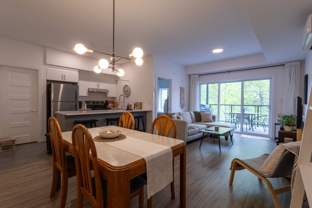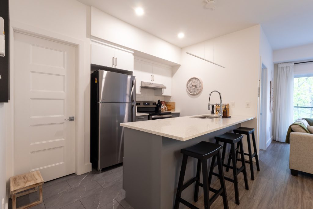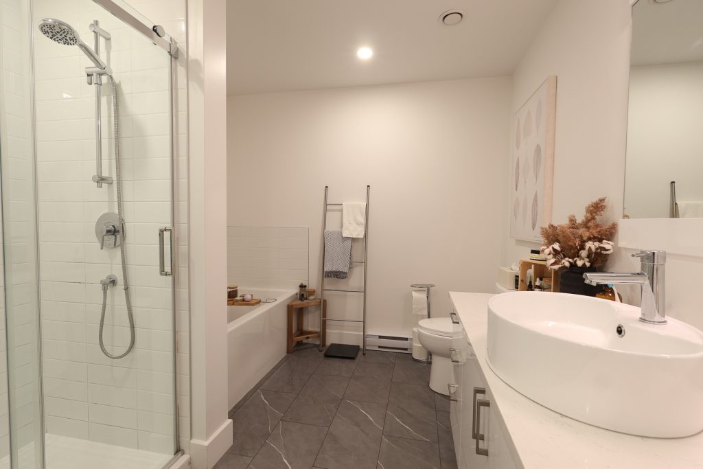 Luxueux logement de style condo d’une superficie de 784 (unités 08) ou 837 (unités 03-07-09) pieds carrés. Ce logement au look moderne vous offre une vaste et lumineuse aire commune. Elle comprend une cuisine au goût du jour avec un grand garde-manger, comptoir-lunch en quartz pouvant accueillir 4 personnes et une spacieuse salle à manger. La grande salle de bain possède un bain et une douche séparée ainsi qu’une grande vanité. Une thermopompe chauffe et climatise le logement.