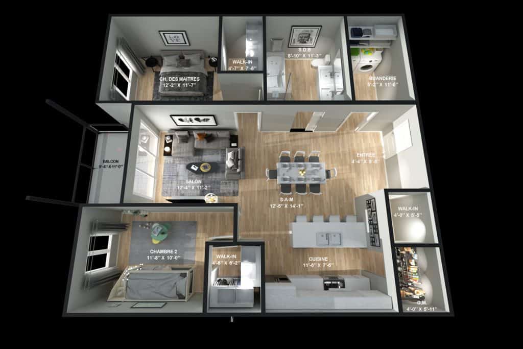 • Chambre des maîtres : 12'-2" x 11'-7"