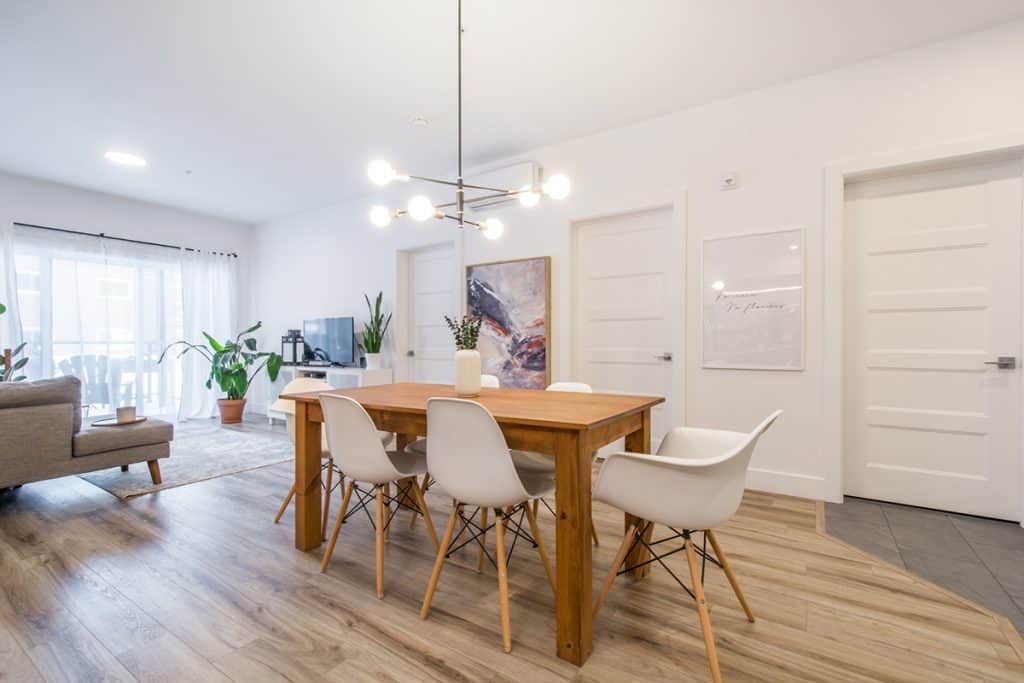 Luxueux logement de style condo d’une superficie de 1066 pieds carrés. Ce logement au look moderne vous offre une vaste et lumineuse aire commune. Elle comprend une cuisine au goût du jour comprenant comptoir-lunch en quartz pouvant accueillir 4 personnes et une spacieuse salle à manger. Ces 4 ½ possèdent un espace garde-manger indépendant. La grande salle de bain possède un bain et une douche séparée et un espace de rangement. Une thermopompe chauffe et climatise le logement.