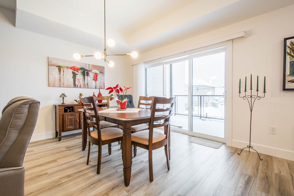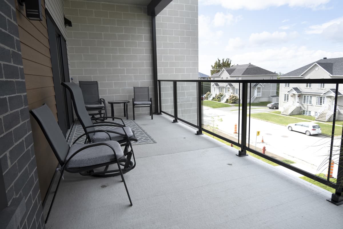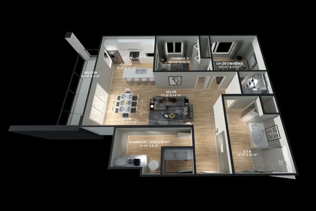 Luxueux logement de style condo d’une superficie de 1157 pieds carrés. Ce logement au look moderne vous offre une vaste et lumineuse aire commune. Elle comprend une cuisine au goût du jour comprenant comptoir-lunch en quartz pouvant accueillir 4 personnes et une spacieuse salle à manger.  La grande salle de bain possède un bain et une douche séparée ainsi qu’une vanité à deux lavabos et un espace de rangement. Vous serez charmé par l’immense balcon en façade de 25 pieds de long. Une thermopompe chauffe et climatise le logement.