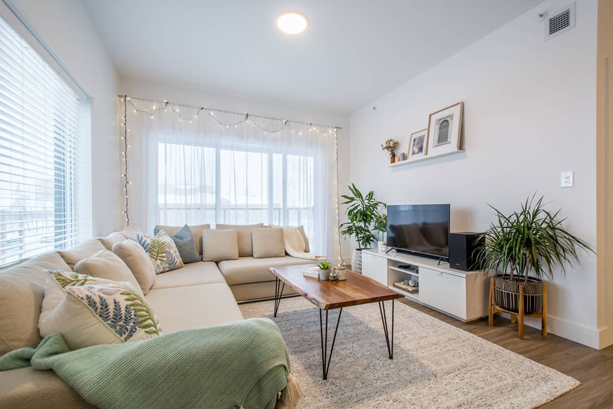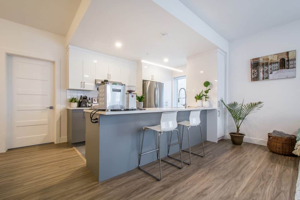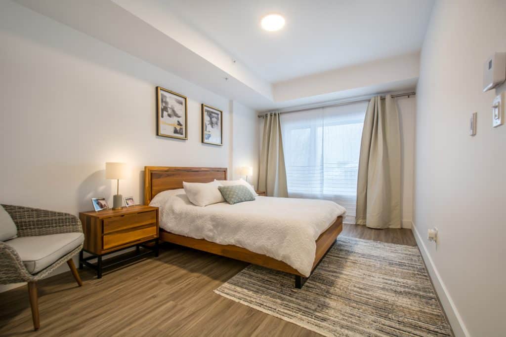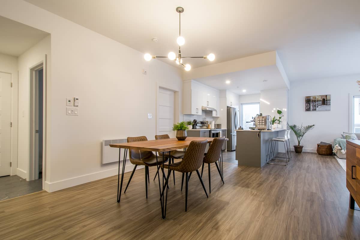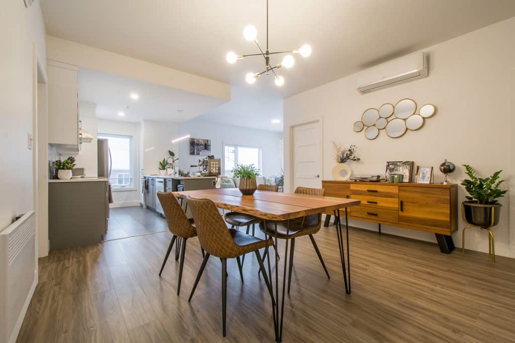 Luxueux logement de style condo d’une superficie de 1286 pieds carrés. Ce logement au look moderne vous offre une vaste et lumineuse aire commune. Elle comprend une cuisine au goût du jour comprenant comptoir-lunch en quartz pouvant accueillir 4 personnes et une spacieuse salle à manger. La grande salle de bain possède un bain et une douche séparée ainsi qu’une vanité à deux lavabos. Ce modèle de 5½ vous offre une salle d’eau en plus de la salle de bain principale. Une thermopompe chauffe et climatise le logement.