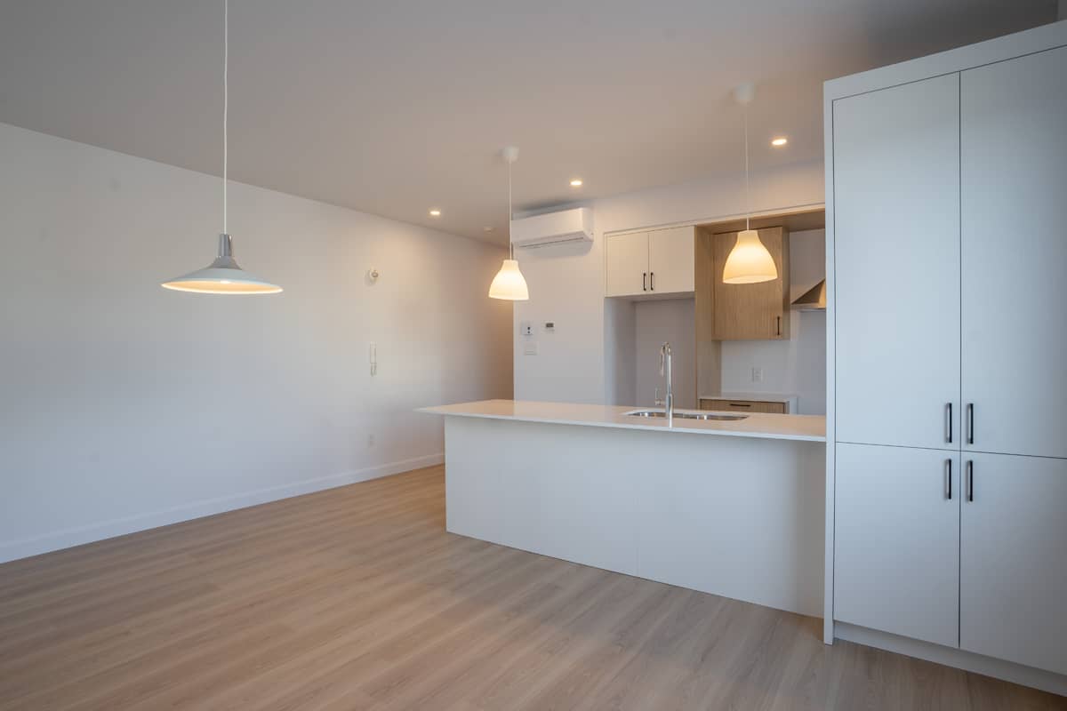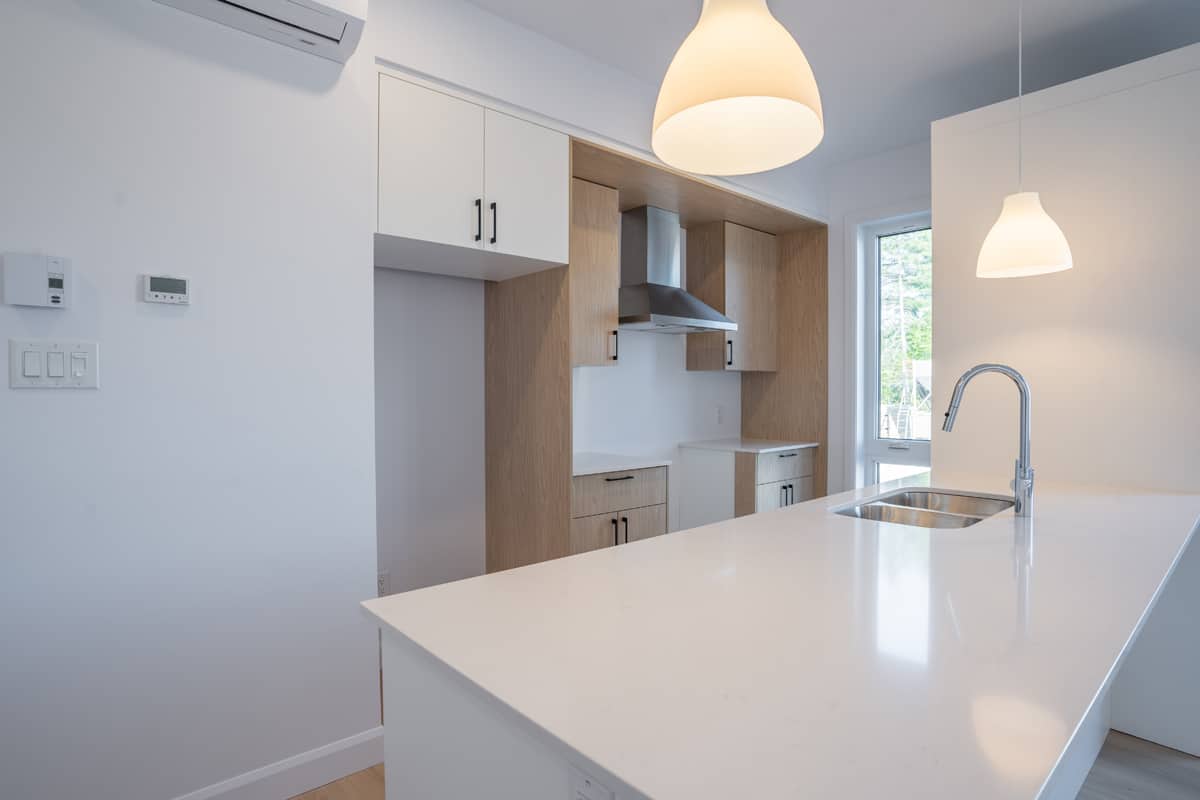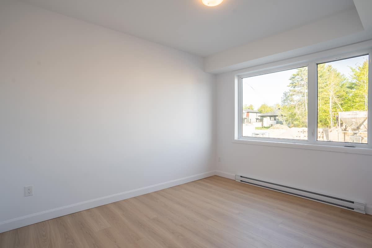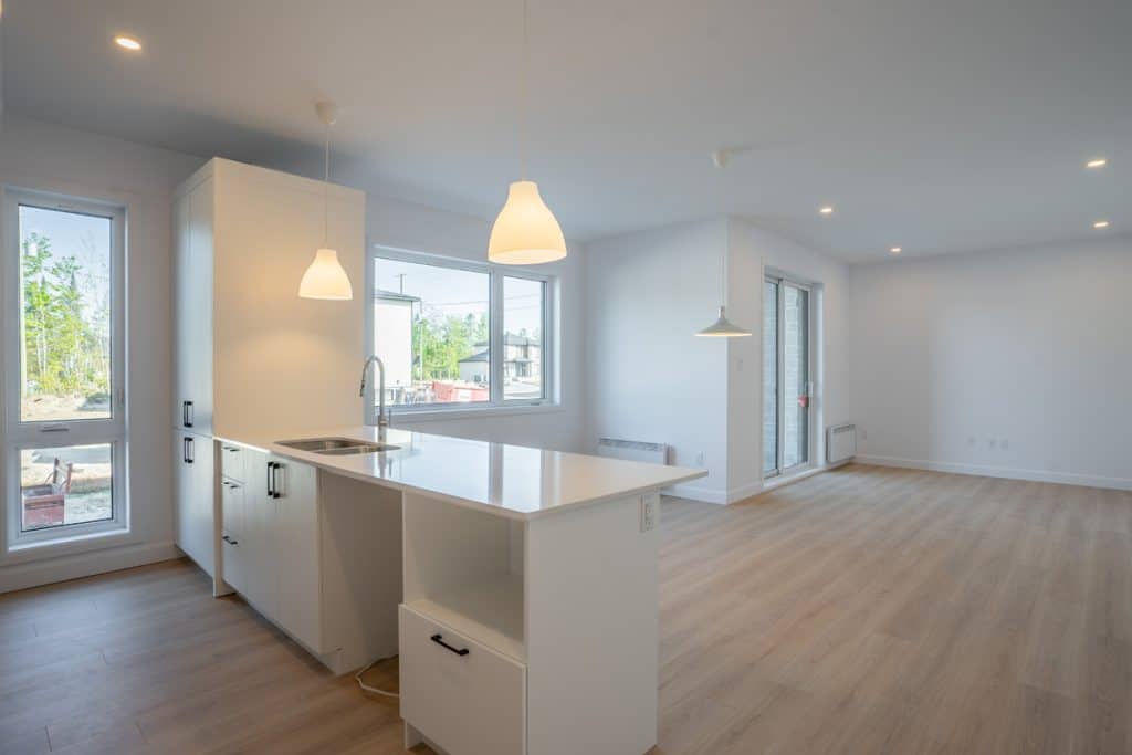 Luxueux logement de style condo d’une superficie de 943 pieds carrés. Ce logement au look moderne vous offre une vaste et lumineuse aire commune. Il possède une cuisine tendance et épurée comprenant comptoir lunch en quartz pouvant accueillir 4 personnes et une spacieuse salle à manger. La grande salle de bain contient un bain et une douche séparée ainsi qu’une vanité en quartz. L’eau est branchée pour le réfrigérateur. Le logement est muni d’une thermopompe pour le chauffage et la climatisation.