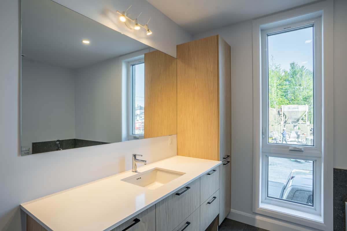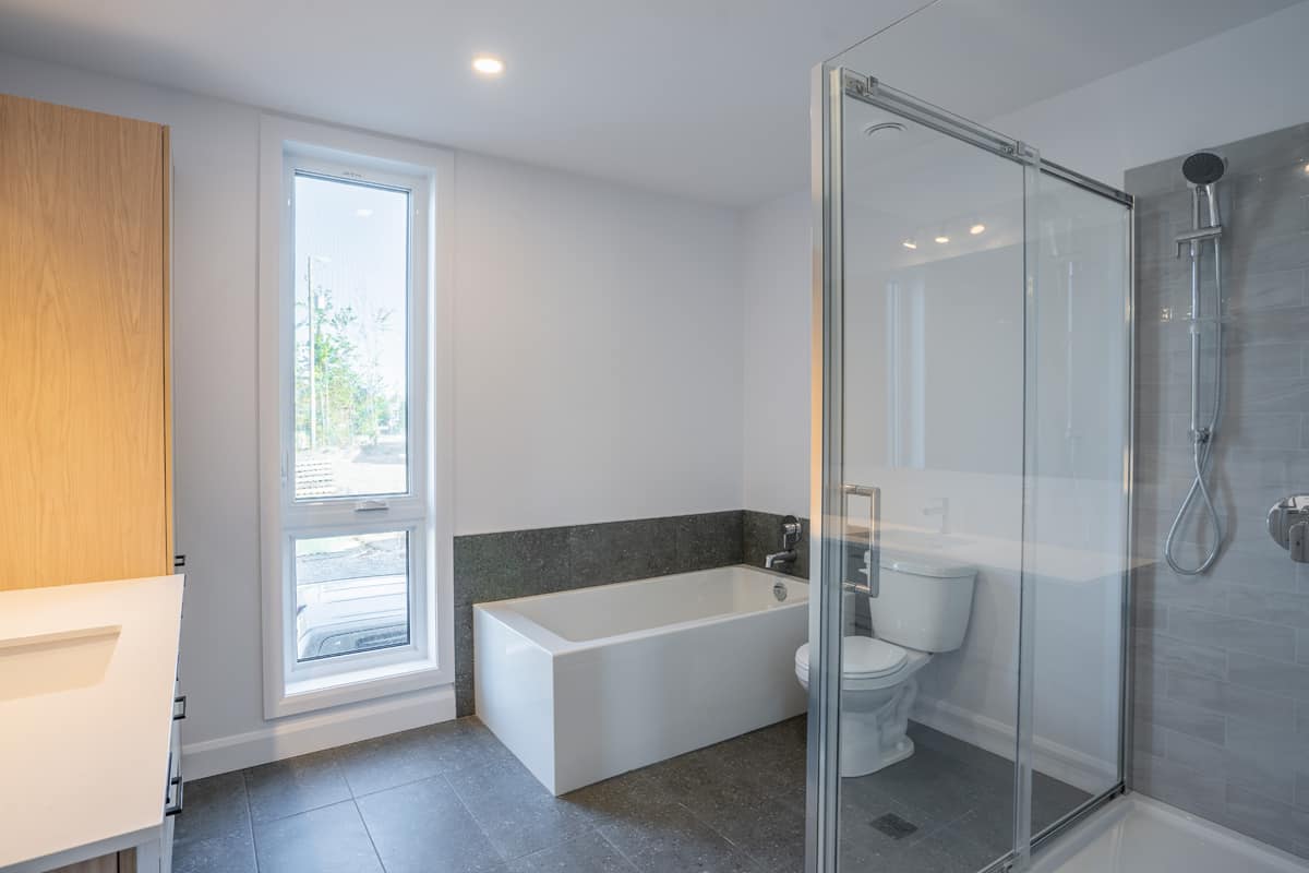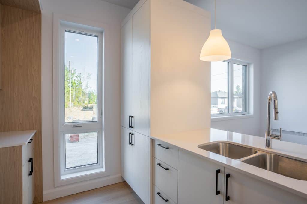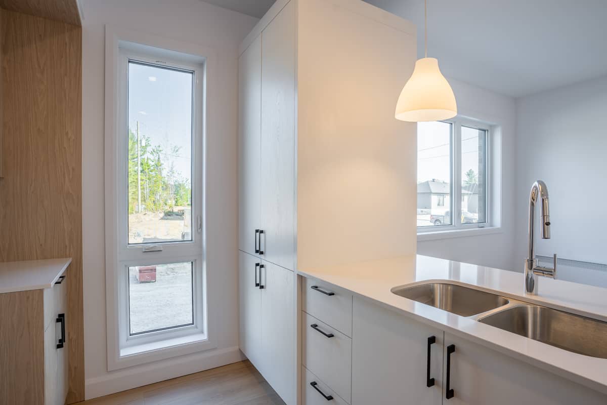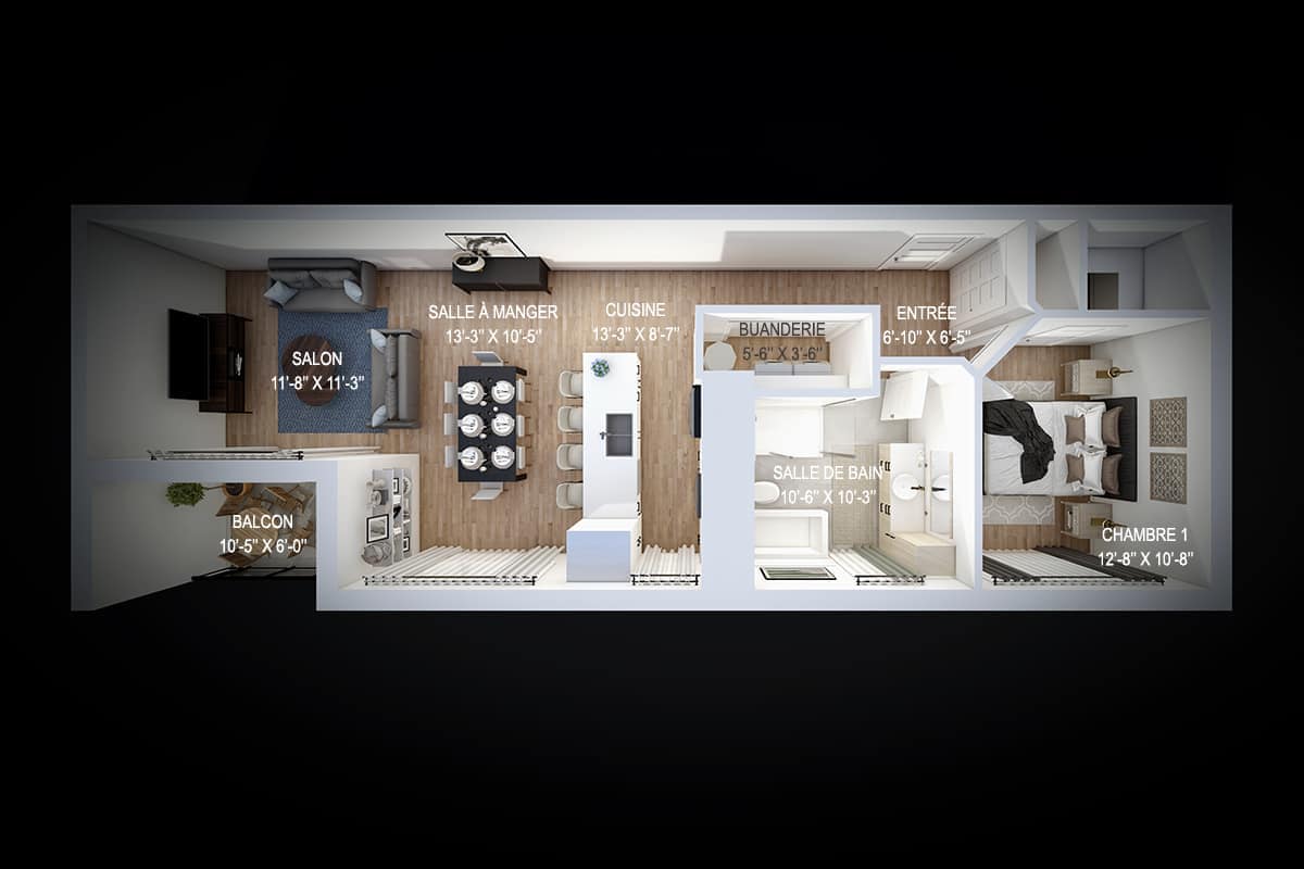 Luxueux logement de style condo d’une superficie de 943 pieds carrés. Ce logement au look moderne vous offre une vaste et lumineuse aire commune. Il possède une cuisine tendance et épurée comprenant comptoir lunch en quartz pouvant accueillir 4 personnes et une spacieuse salle à manger. La grande salle de bain contient un bain et une douche séparée ainsi qu’une vanité en quartz. L’eau est branchée pour le réfrigérateur. Le logement est muni d’une thermopompe pour le chauffage et la climatisation.