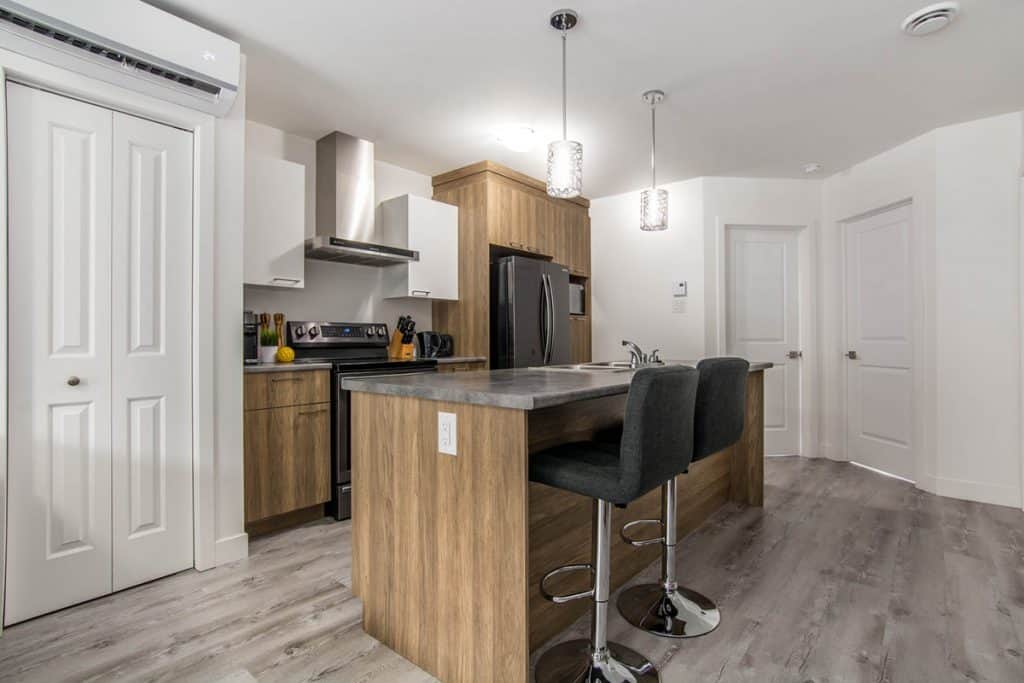 Beau logement de style condo, au 2e étage, d’une superficie de ± 800 pieds carrés. Ce logement au look moderne vous offre une vaste et lumineuse aire commune. Elle comprend une cuisine au goût du jour avec comptoir-lunch pouvant accueillir 3-4 personnes et salle à manger. Toutes les pièces ont de grandes fenêtres. La chambre est munie d’un garde-robe double. Une remise extérieure à même le logement est à votre disposition. Cet appartement est muni d’une thermopompe murale. L’internet est inclus, délivré par modem individuel dans chaque appartement, vous aurez 1 gigabit de capacité.