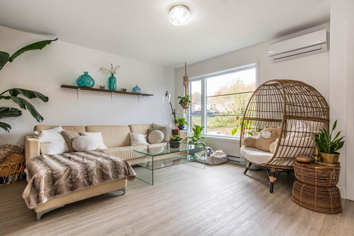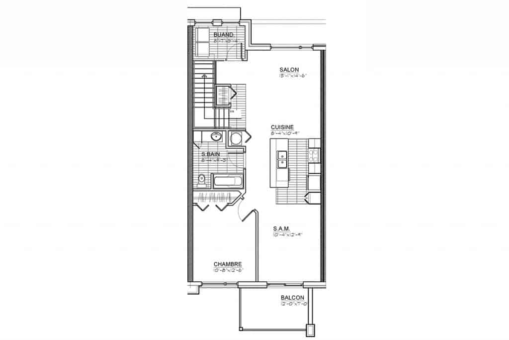 Beau logement de style condo, au 3e étage, d’une superficie de ± 950 pieds carrés. Ce logement au look moderne vous offre une vaste et lumineuse aire commune. Elle comprend une cuisine au goût du jour avec comptoir-lunch pouvant accueillir 3-4 personnes et grande salle à manger. La chambre est munie d’un garde-robe double. Ce type de logement vous offre une salle de lavage indépendante. Cet appartement est muni d’une thermopompe murale. L’internet est inclus, délivré par modem individuel dans chaque appartement, vous aurez 1 gigabit de capacité.