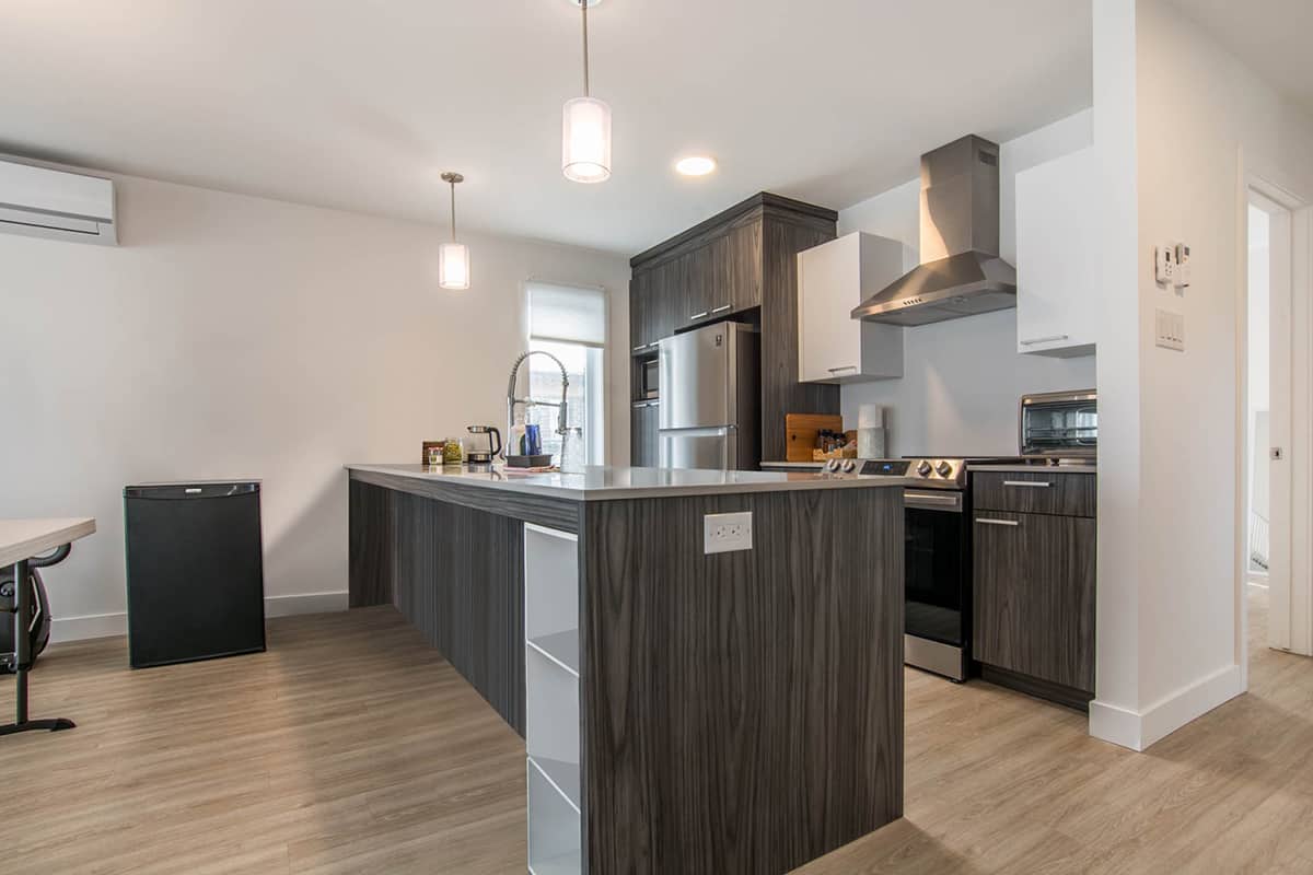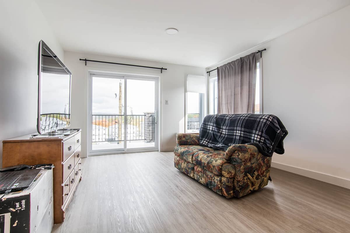 Beau logement de style condo, au 3e étage, d’une superficie de ± 1175pieds carrés. Ce logement au look moderne vous offre une vaste et lumineuse aire commune. Elle comprend une cuisine au goût du jour avec comptoir-lunch pouvant accueillir 3-4 personnes et grande salle à manger. Ce type de logement vous offre une salle de lavage indépendante. Cet appartement est muni d’une thermopompe murale. L’internet est inclus, délivré par modem individuel dans chaque appartement, vous aurez 1 gigabit de capacité.