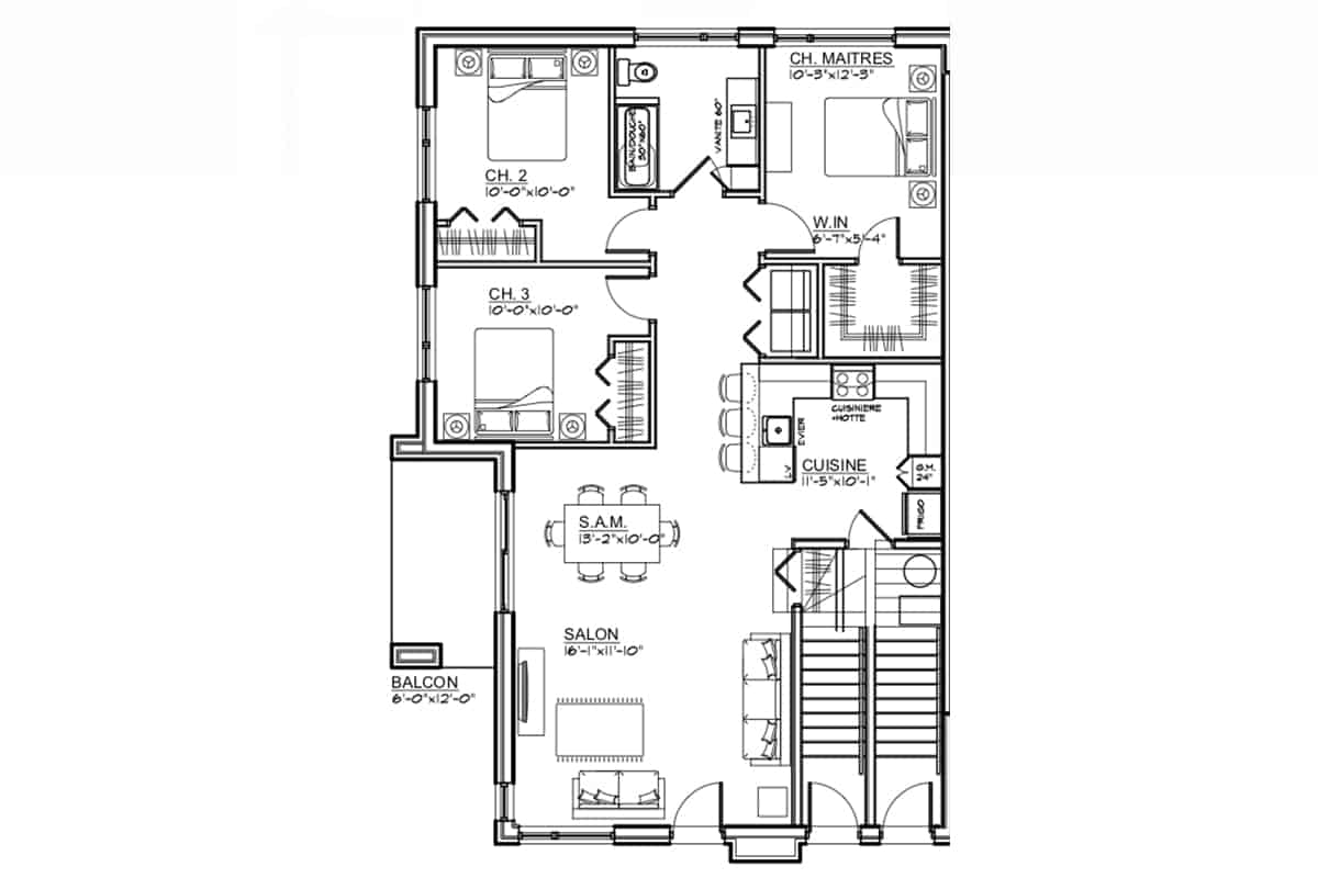 • Chambre des maîtres : 10'-3" x 12'-3"