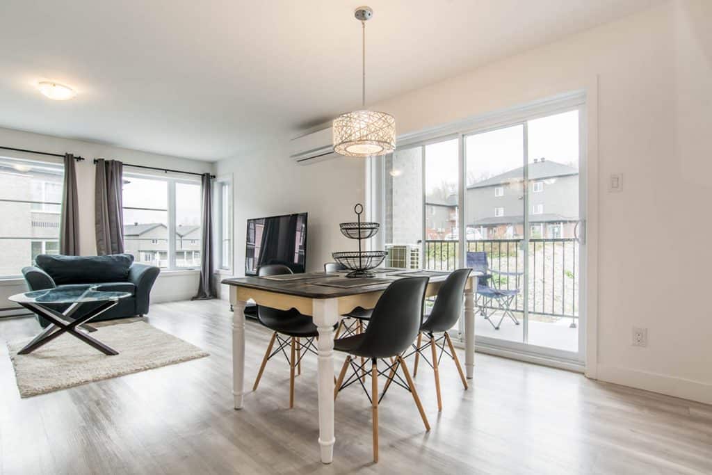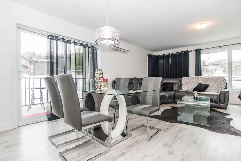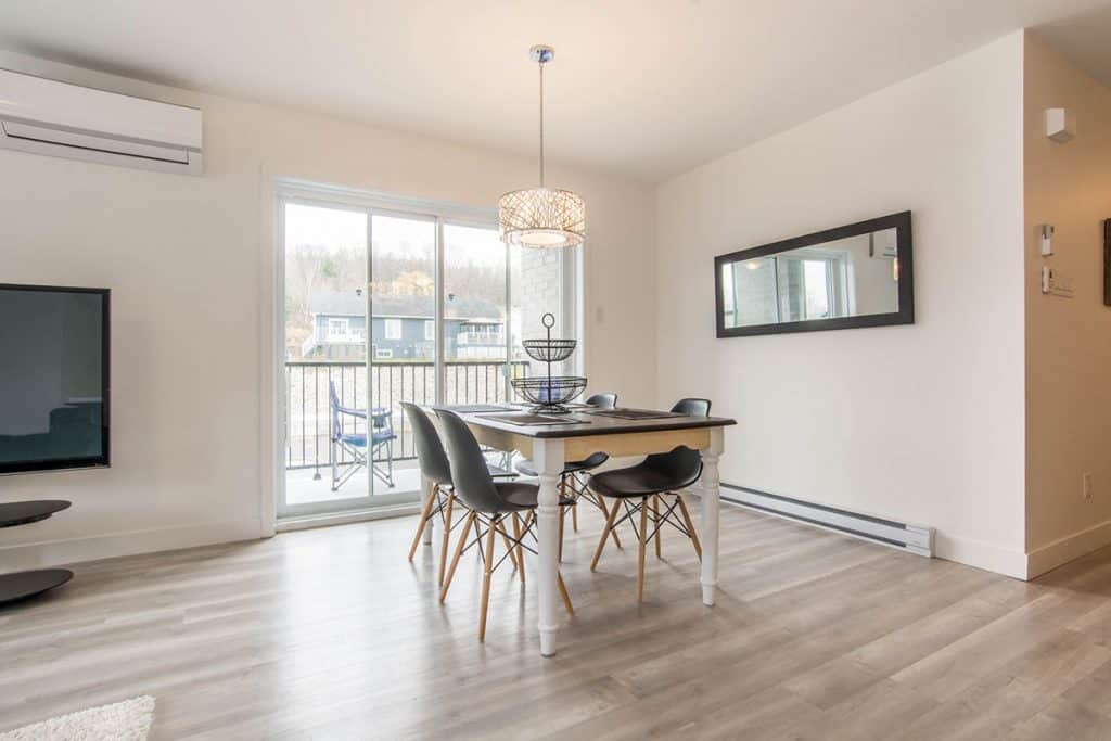 Beau logement de style condo, au 2e étage, d’une superficie de ± 1 250 pieds carrés. Ce logement au look moderne vous offre une vaste et lumineuse aire commune. Elle comprend une cuisine au goût du jour avec comptoir-lunch pouvant accueillir 3-4 personnes et salle à manger. Toutes les pièces ont de grandes fenêtres. La chambre des maîtres possède un walk-in et les deux autres chambres sont munies d’un garde-robe double. Cet appartement est muni d’une thermopompe murale. L’internet est inclus, délivré par modem individuel dans chaque appartement, vous aurez 1 gigabit de capacité.